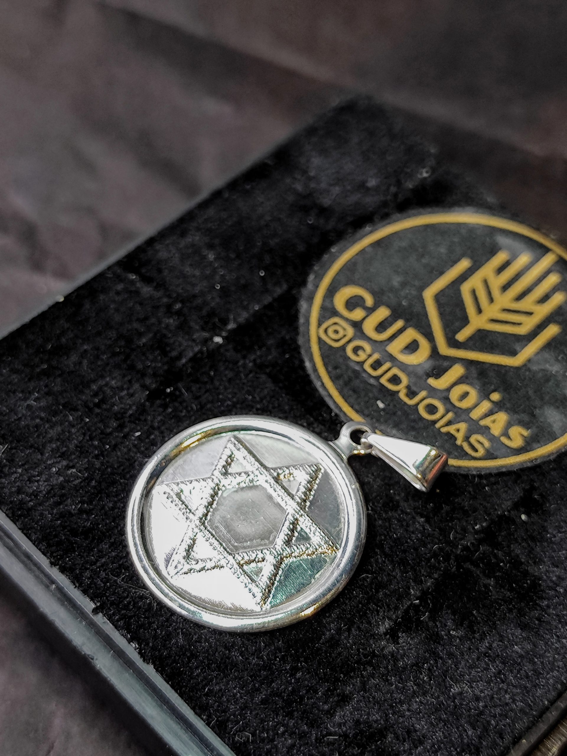 Pingente Estrela de Davi Médio Maciço Banho Triplo Prata 950