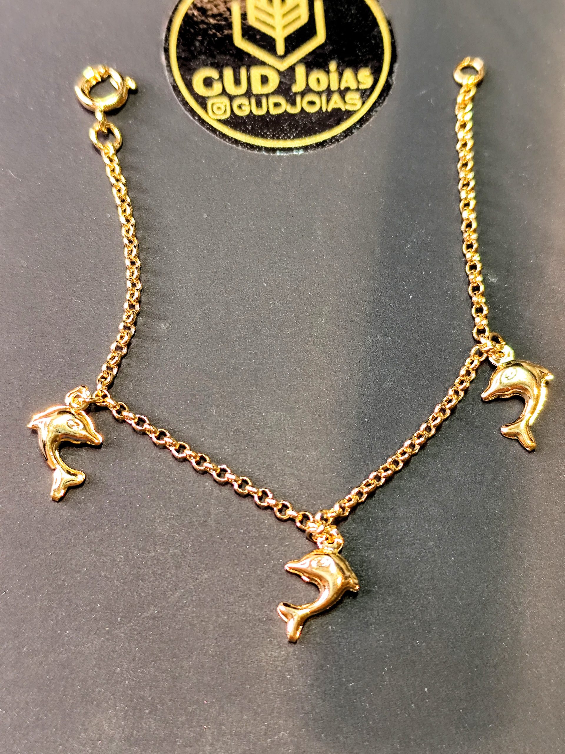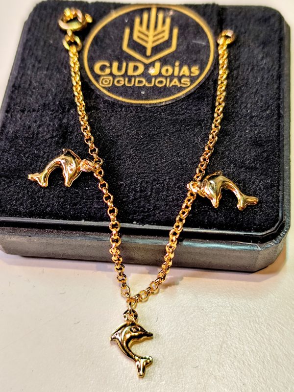 Pulseira Infantil Golfinhos 13cm – Banho Triplo em Ouro 18k