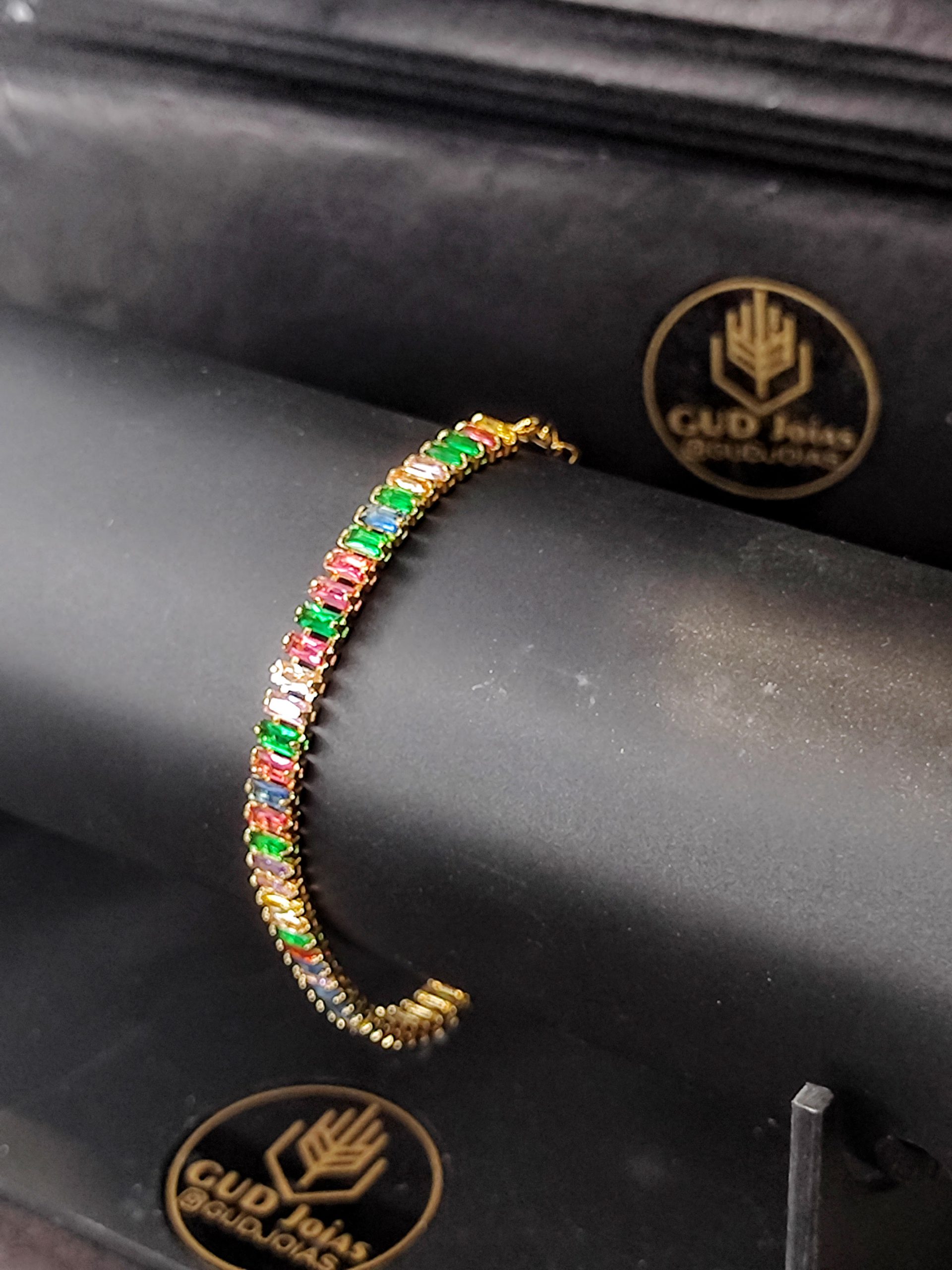 Pulseira Zirconia Colours 4mm Banho Triplo em Ouro 18K